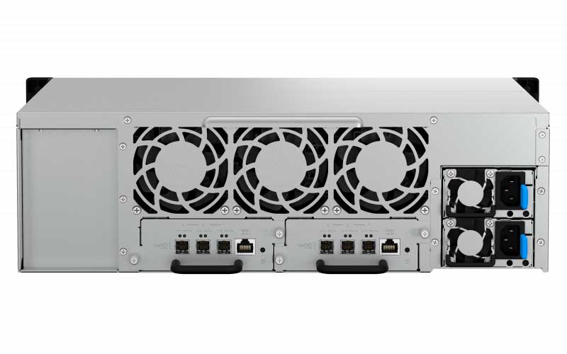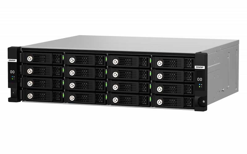 O gabinete de expansão de armazenamento TL-R1620Sdc de rackmount 3U e 16 baias para discos SATA e SAS 12 Gb / s é ideal para expandir a capacidade de armazenamento do QNAP NAS de controlador duplo.