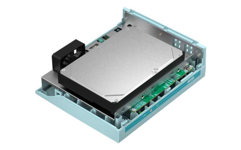 Um NAS residencial com ventilador de resfriamento para fluxo de calor