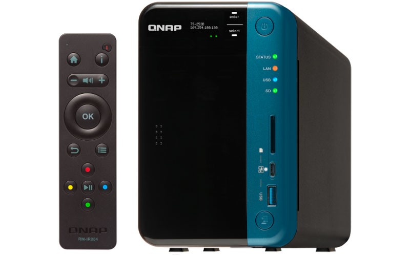 O TS-253B funciona como central multimídia completa, combinando um hardware de aceleração gráfica Intel HD Graphics suporta de codificação e transcodificação de hardware em tempo real de dois canais 4K H.264/H.265, assim ele é capaz de converter vídeos para formatos aceitos pela maioria dos dispositivos para uma execução perfeita. O Qnap Linux Station é integrado com o sistema operacional Ubuntu permitindo a instalação do de aplicativos multimídia como Plex Media Server, KMplayer, LibreOffice e VLC. O HD Station garante uma experiencia multimídia com o HD player ou aplicativos de terceiros como Plex Home Theater. Ao conectar o servidor NAS doméstico em uma HDTV ou receptor A/V é possível assistir vídeos 4K. O controle remoto Qnap melhora ainda mais a experiência multimídia dos usuários, ele pode ser customizado via o Qbutton para realizar funções diferentes, por exemplo tocar músicas, visualizar feeds de vigilância ou até mesmo desligar o sistema.