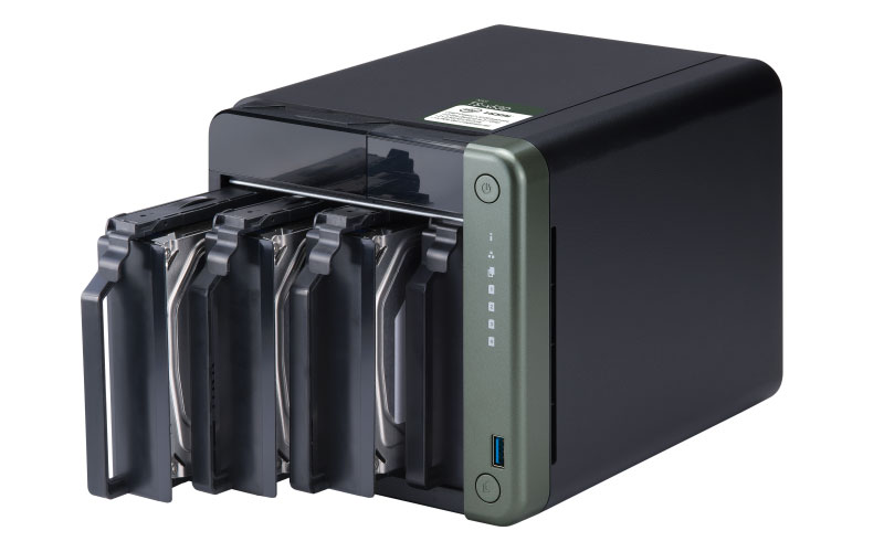 Integre gabinetes de expansão: Conecte dois gabinetes de expansão RAID TR-004, um JBOD TL-D800C USB 3.2 Gen 2 de 8 baias ou um JBODs TL-D1600S SATA de 6Gb/s de 16 baias e utilize o Gerente de Armazenamento e snapshots do QTS para facilitar o aumento de espaço da capacidade do NAS.