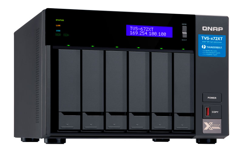 O iMac Pro apresenta uma porta ethernet de 10Gb, assim o TVS-672XT fornece uma base de armazenamento com alta performance para que os usuários possam escolher entre as conexões Thunderbolt 3 e 10GbE para atender as necessidades de aplicativos e dispositivos, pois o storage possui portas 10GbE e Thunderbolt 3.