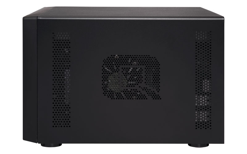 Equipado com 8 gavetas SATA III, o TS-873 Qnap é um NAS storage com espaço para oito hard drives, isso significa que ele possui menor consumo de energia e baixo nível de ruído. Aliando a capacidade de armazenamento dos hard disks SATA e o recurso hot-swappable, o equipamento permite que hard disks sejam substituídos sem a necessidade de desligar o sistema. O NAS storage possui também quatro portas de rede padrão gigabit, possibilitando que as mesmas sejam configuradas como conexão única através de link agregation (trunking), tenham seu tráfego distribuído (load balance) ou seja configuradas para múltiplos IPs (multi-IP). Seus 2 slots livres PCIe possibilitaram instalar novas controladoras para conectividade em alta velocidade (10GbE), ideais para ambientes de altos volumes de trabalho. Esses slots permitem ainda a instalação de placas gráficas para acelerar fluxos gráficos de trabalho e/ou transcodificação de vídeo 4K, além de acelerar a visualização em aplicações de vídeo-vigilância.