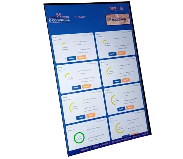 Os dispositivos Echo com telas permitem que hotéis, residências para idosos e outras propriedades exibam informações sobre sua propriedade, ativem o pedido de serviço de quarto usando tela sensível ao toque e voz ou exibam eventos na propriedade.