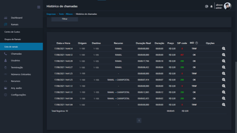 Um dos principais recursos do PABX IP é o sistema de tarifação de chamadas altamente confiável, que realiza a apuração do valor da chamada de acordo com a cadência e tarifa configurada.